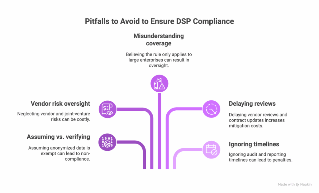 - Many teams still believe that strong encryption, standard privacy programs, or basic breach prevention are enough. Under the DSP, they are not.