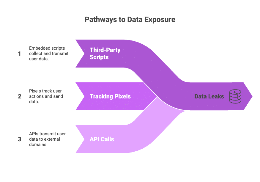 For example, a site may load an analytics tool, trigger a pixel, or pass form details through an API. These actions look ordinary because, indeed, they are ordinary. Nothing in the behavior stands out. And that is why they get missed.