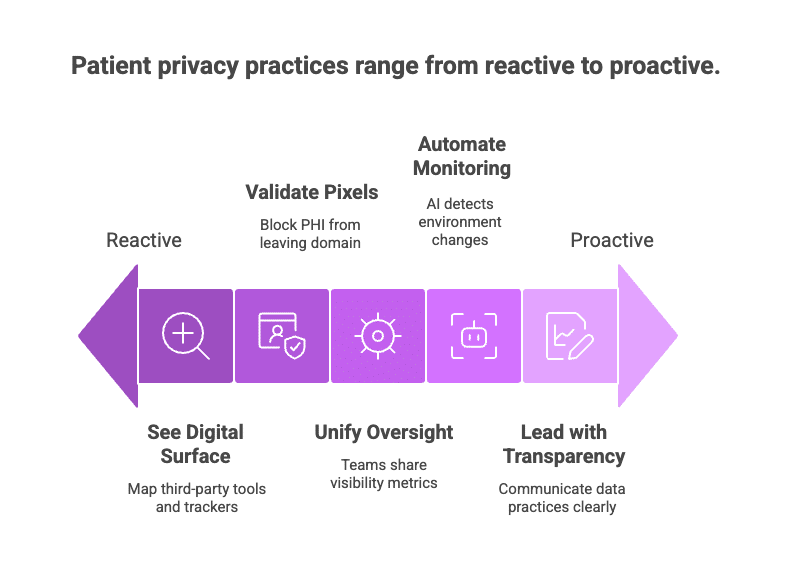 The Pomona Valley incident is a growing challenge shared across the healthcare industry. This case illustrates that even well-intentioned digital strategies can create unseen data pathways. A more coordinated approach between compliance, IT, and marketing teams could help mitigate these risks. This approach includes: